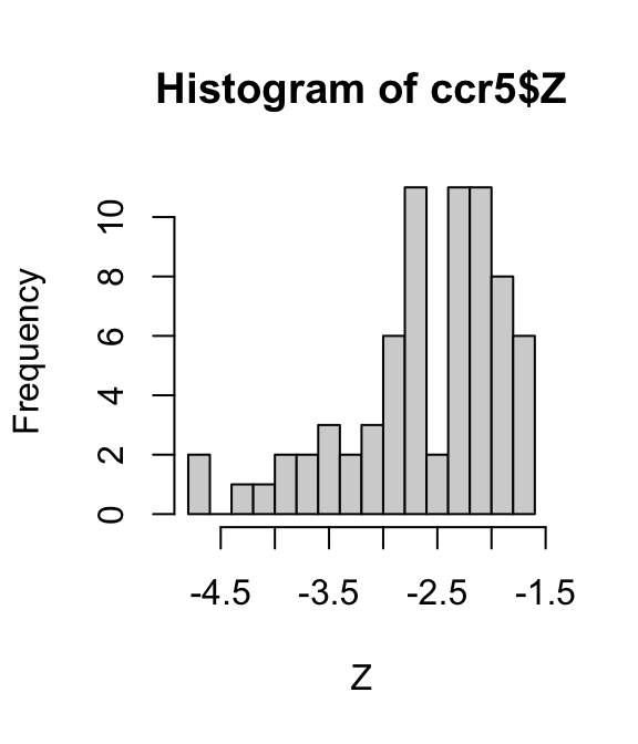 hist(ccr5$Z,breaks = 16,xlab = "Z")