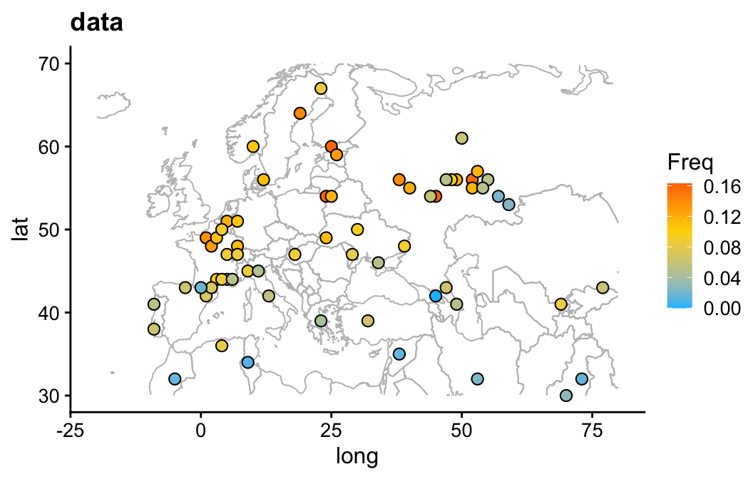 We will use this function below to plot the allele frequencies on a map of Europe (and parts of Asia):